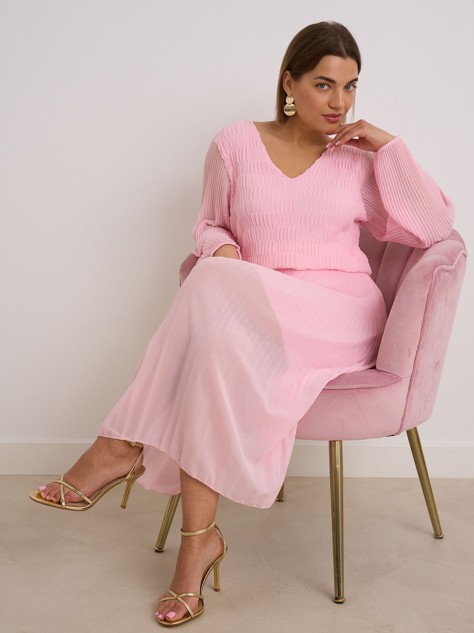 V neck long sleeve dress