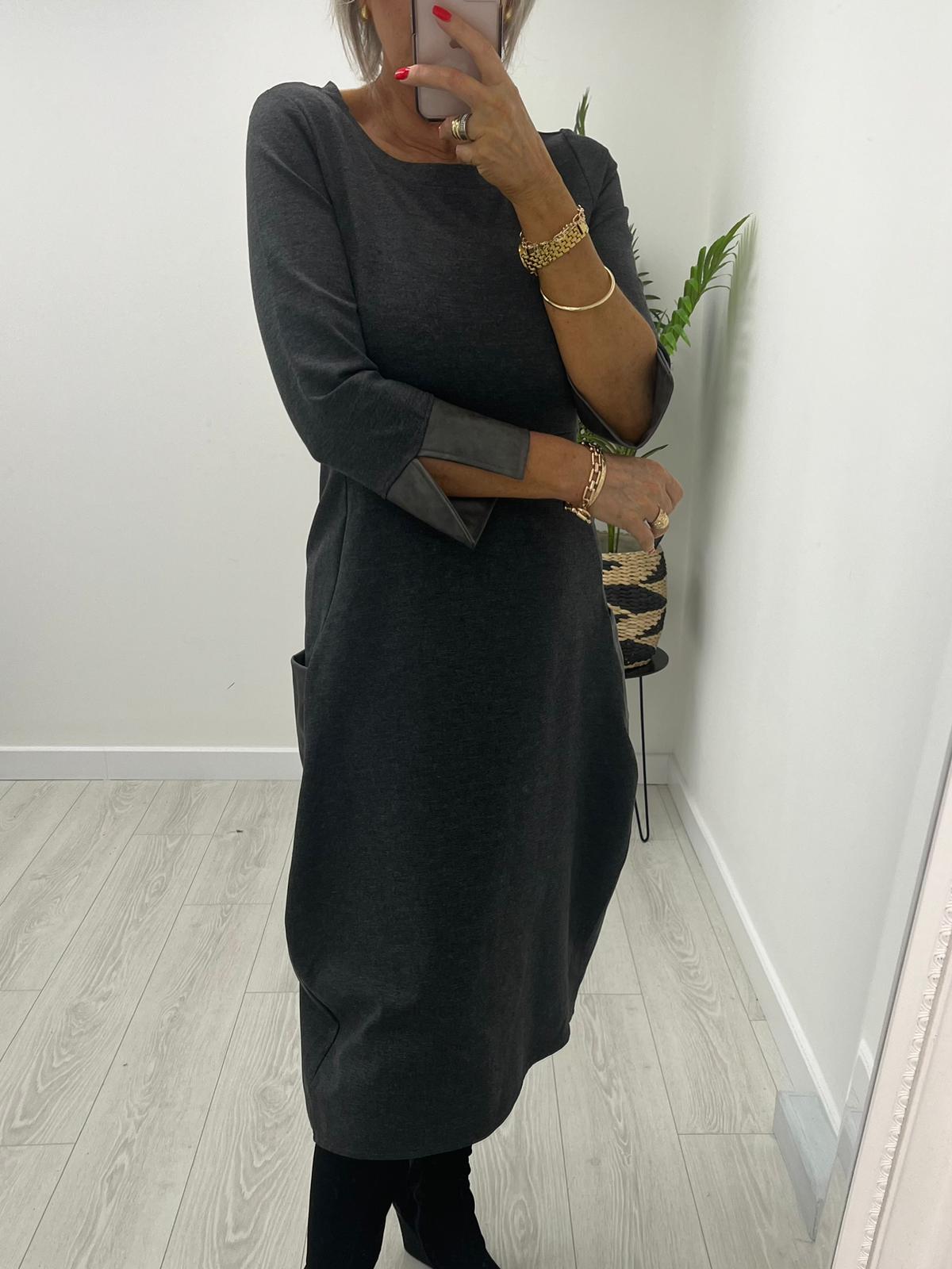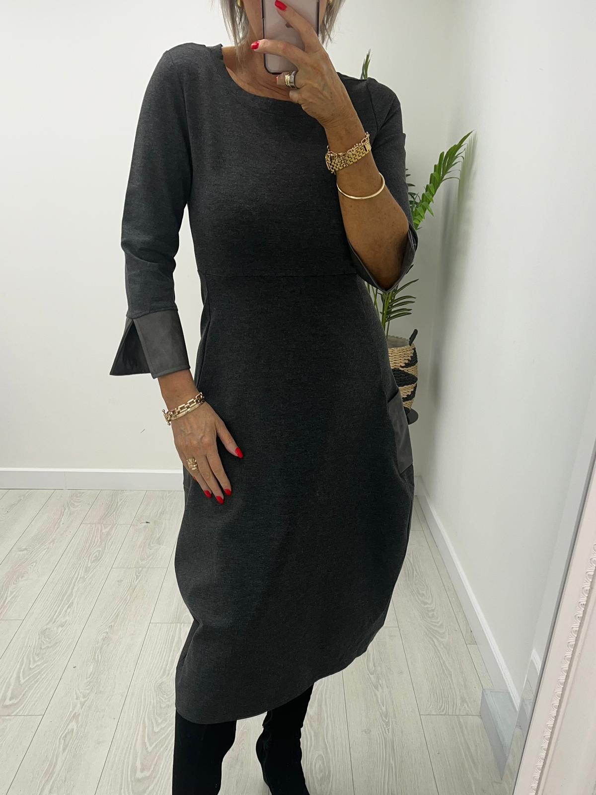 Leather trim day dress