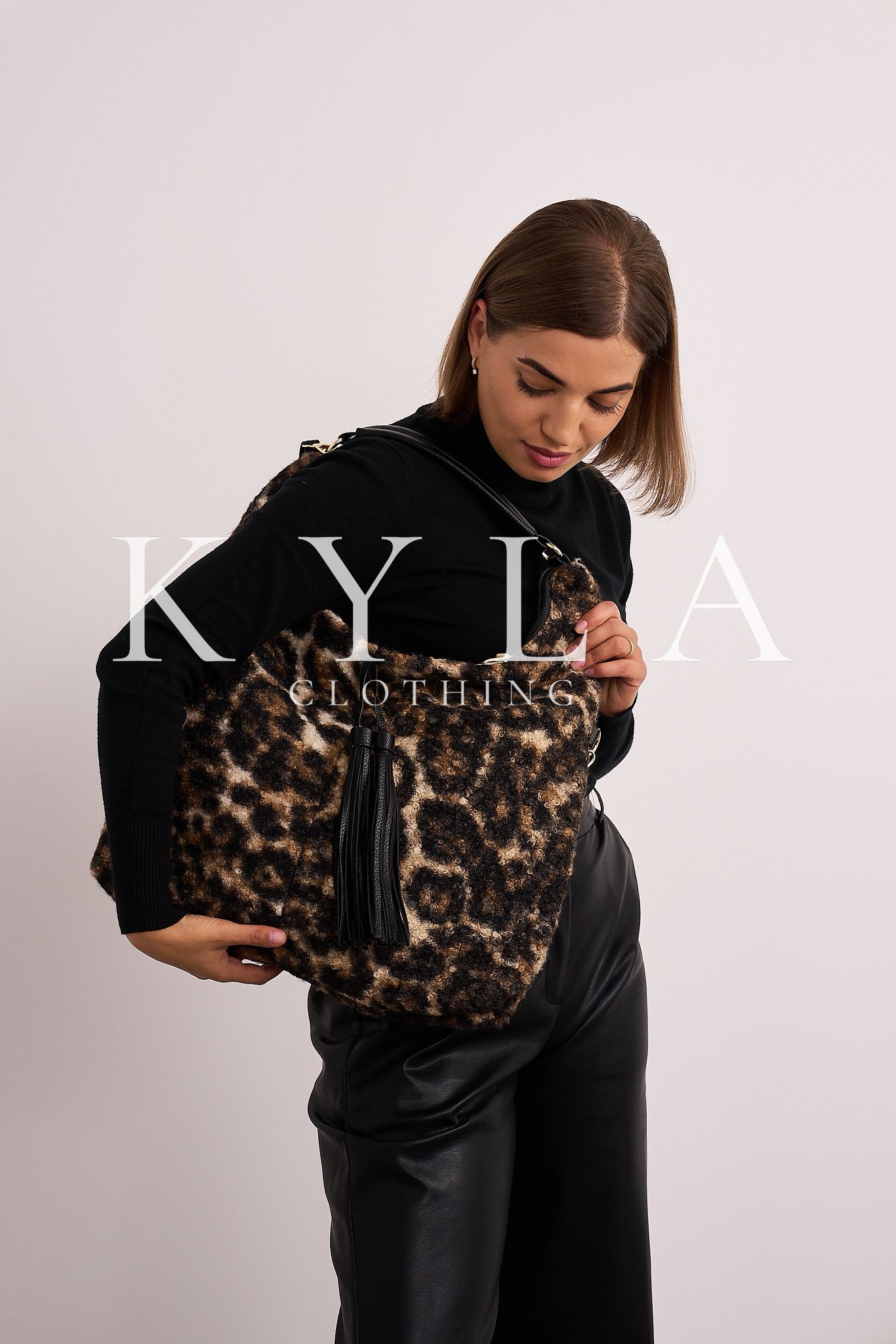 Leopard print shoulder sack